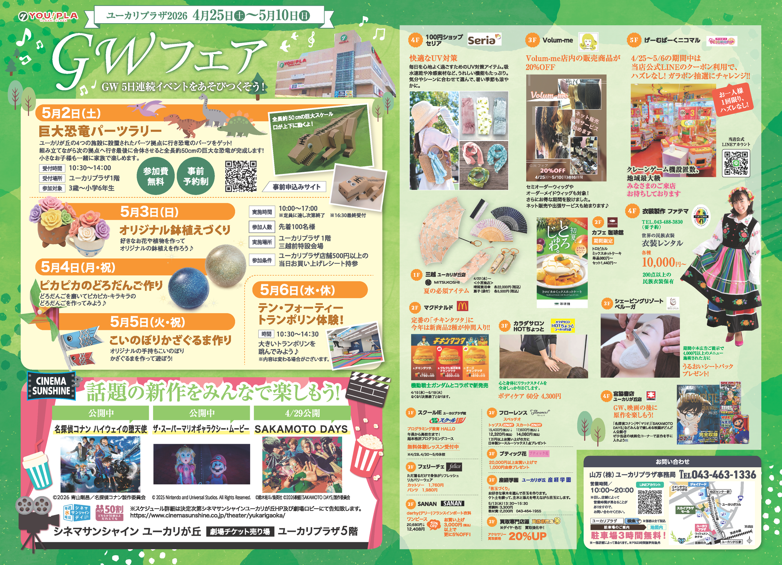 4月25日(土)~5月10日(日)まで、ユーカリプラザではGWフェアを開催いたします!!