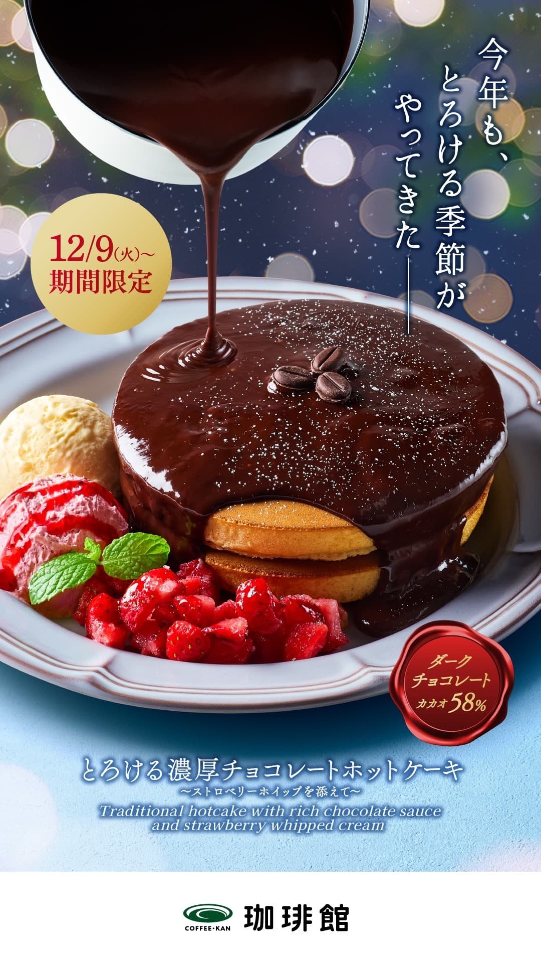 発売以来愛され、引き継がれている炭火珈琲をはじめ、トラディショナル・ホットケーキなど、珈琲館ならではのコーヒーによく合うスイーツやお食事をお楽しみ下さい。